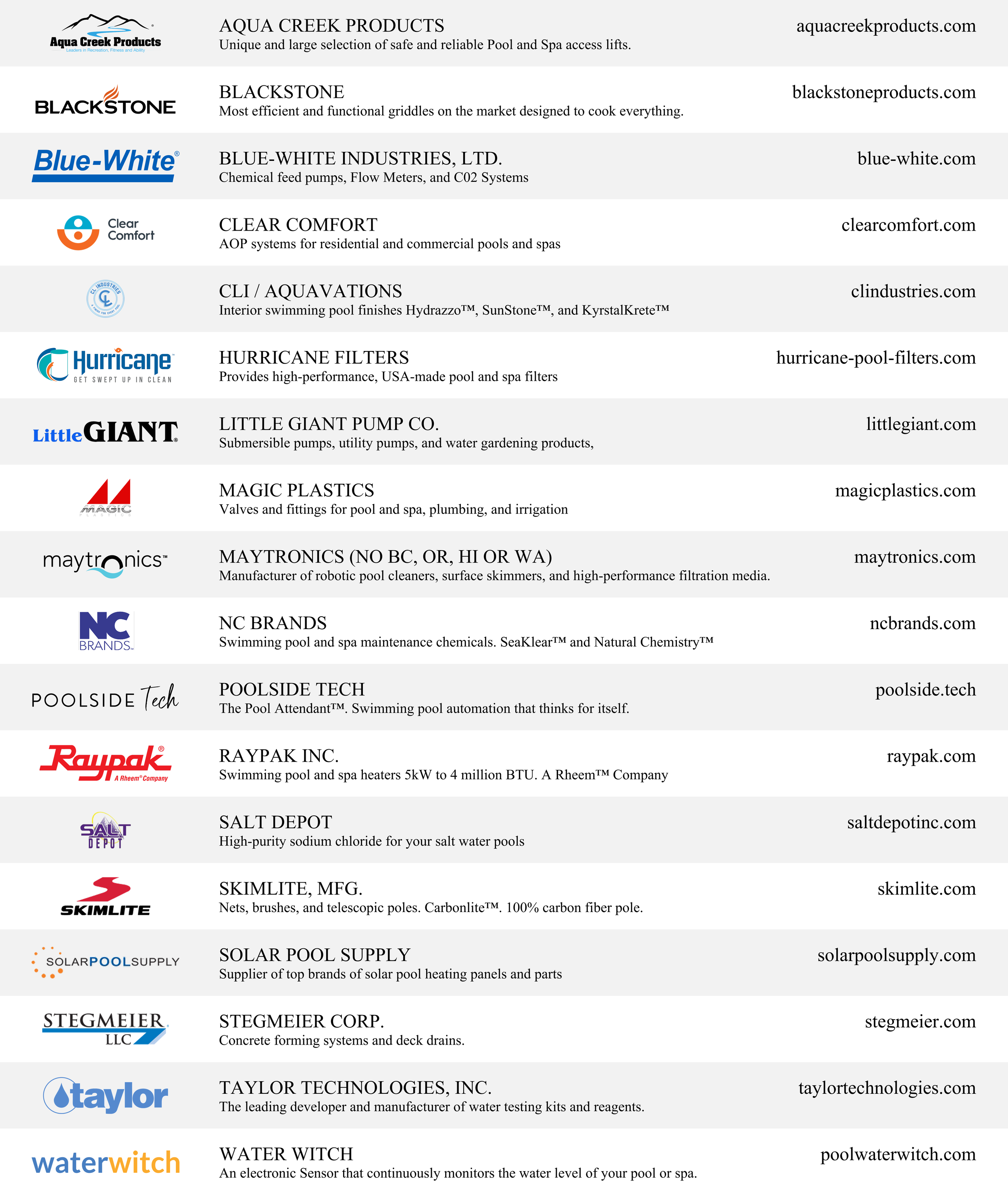Manufacturers Roster